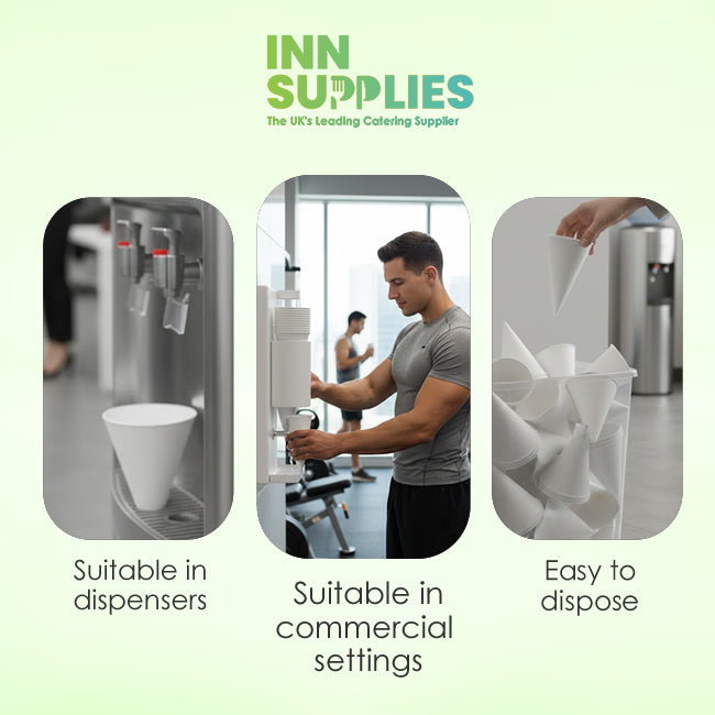Disposable water cones are a convenient and cost-effective solution for use with water dispensers used in schools, gyms, workplaces, and leisure venues.