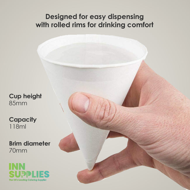 Paper cone size: 70 mm Brim Diameter x 85 mm Height. 118ml capacity.